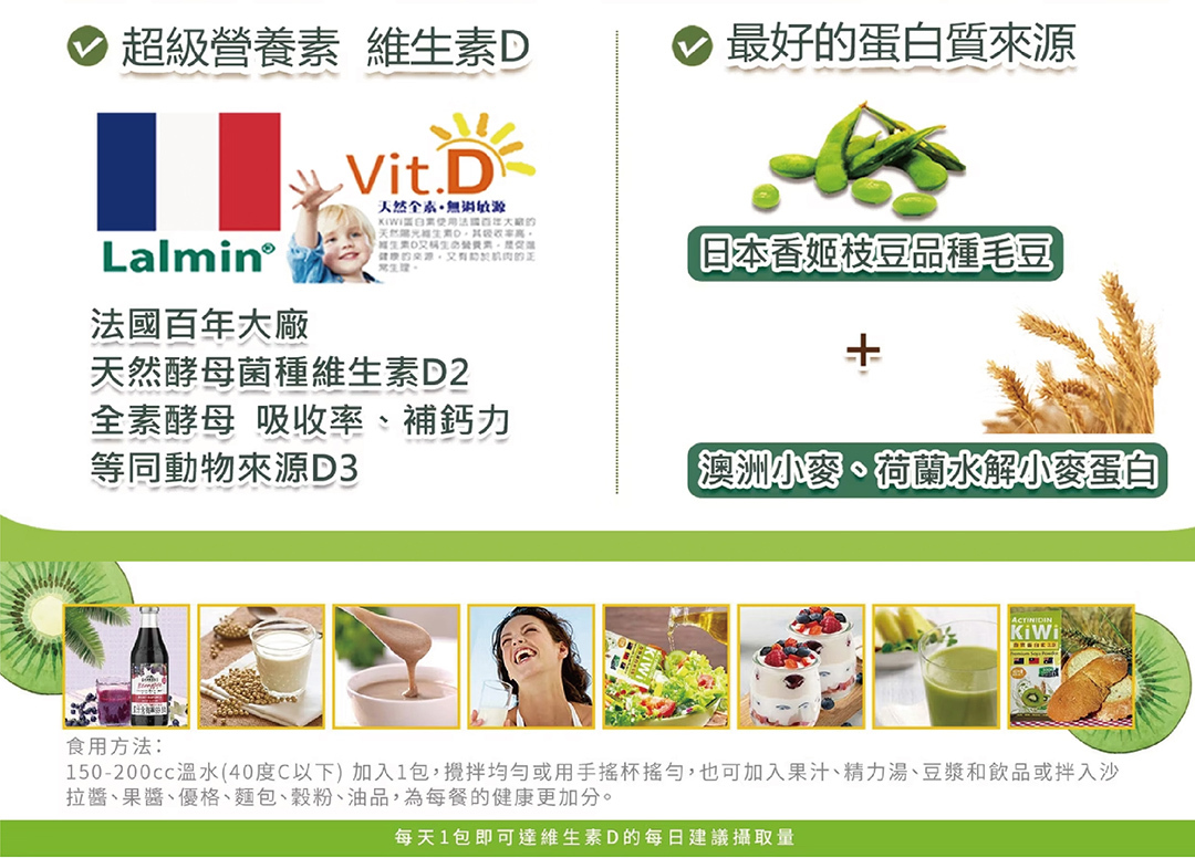 法國百年大廠的天然陽光維生素D、植物蛋白質、奇異果酵素